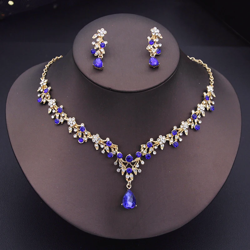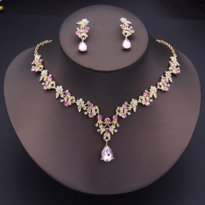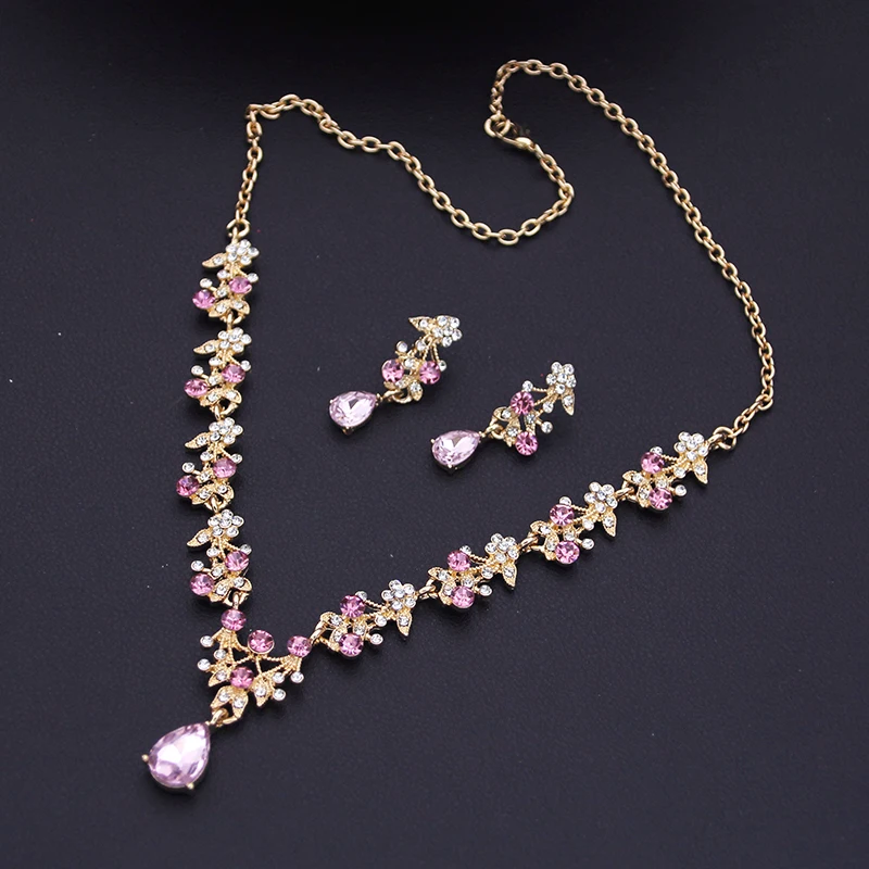 Exquisite Dangle Earrings and Necklace for Women Elegant Jewelry Set Flower Design Shining Rhinestone Necklace set Wedding